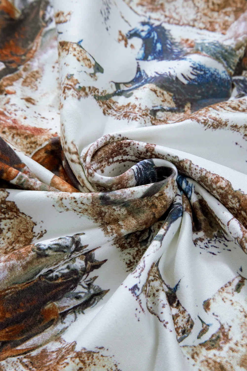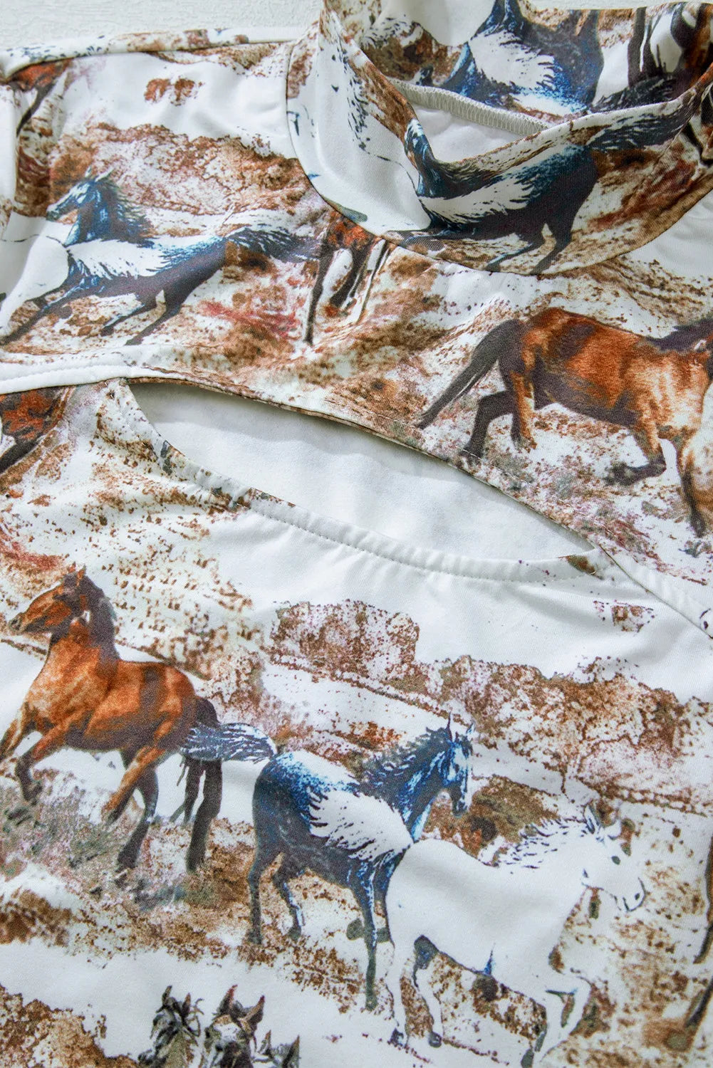 Cutout Printed Mock Neck Long Sleeve T-Shirt