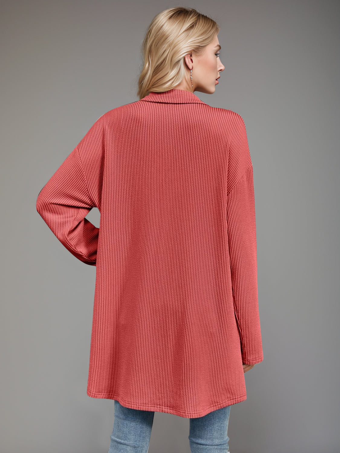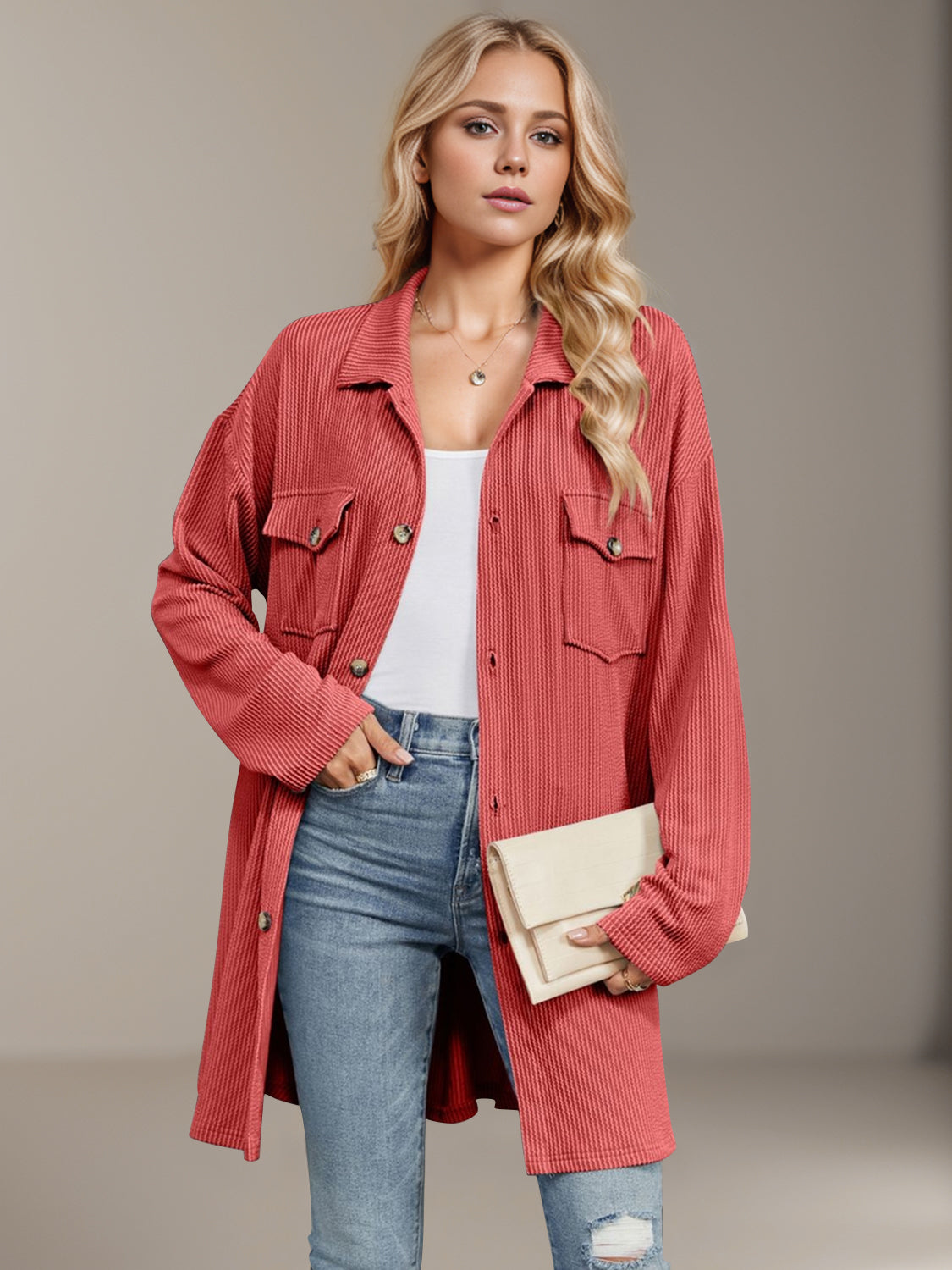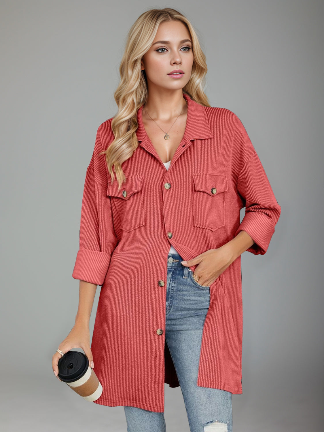 Double Take Textured Pocketed Collared Neck Long Sleeve Shirt