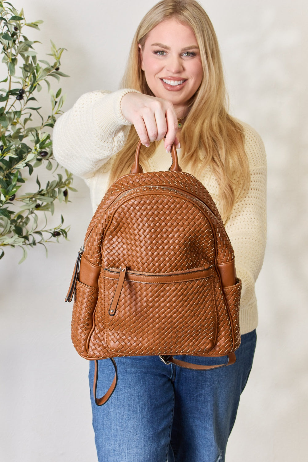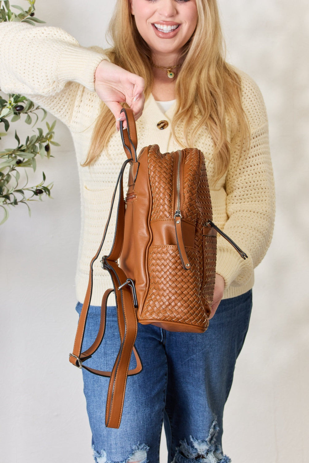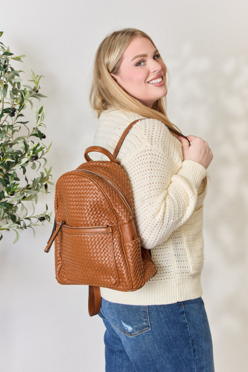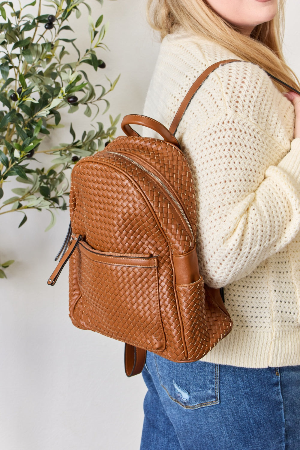 SHOMICO PU Leather Woven Backpack