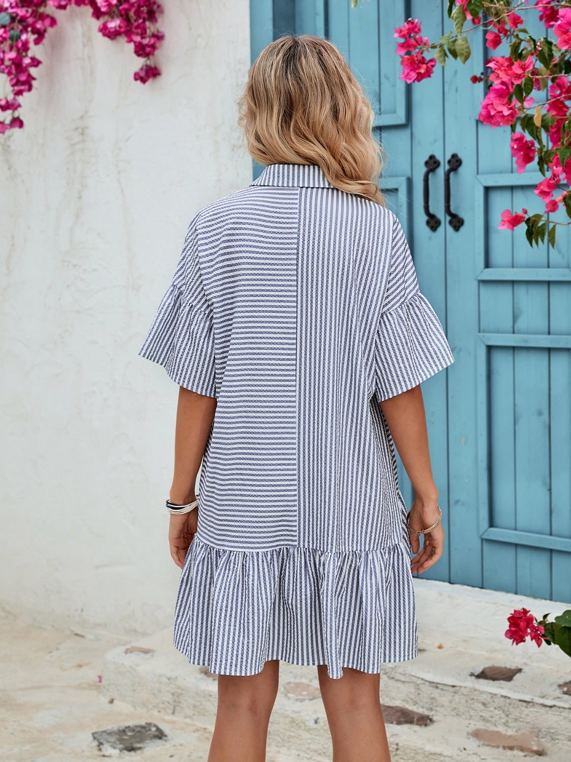 Striped Button Up Half Sleeve Dress