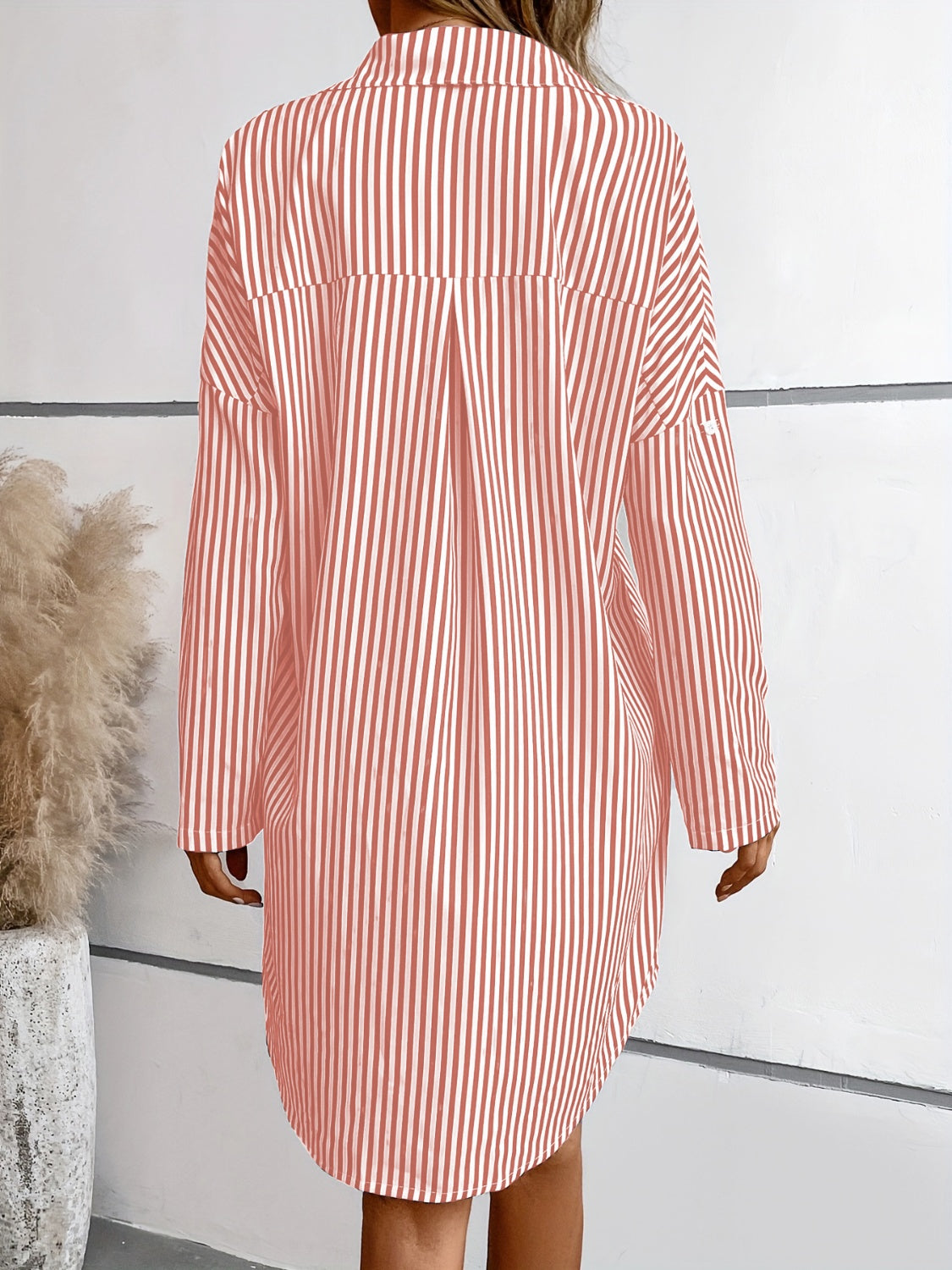 Striped Button Up Long Sleeve Mini Shirt Dress