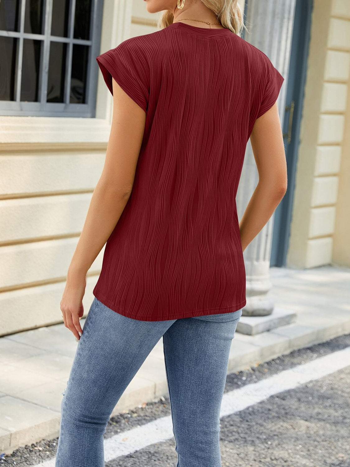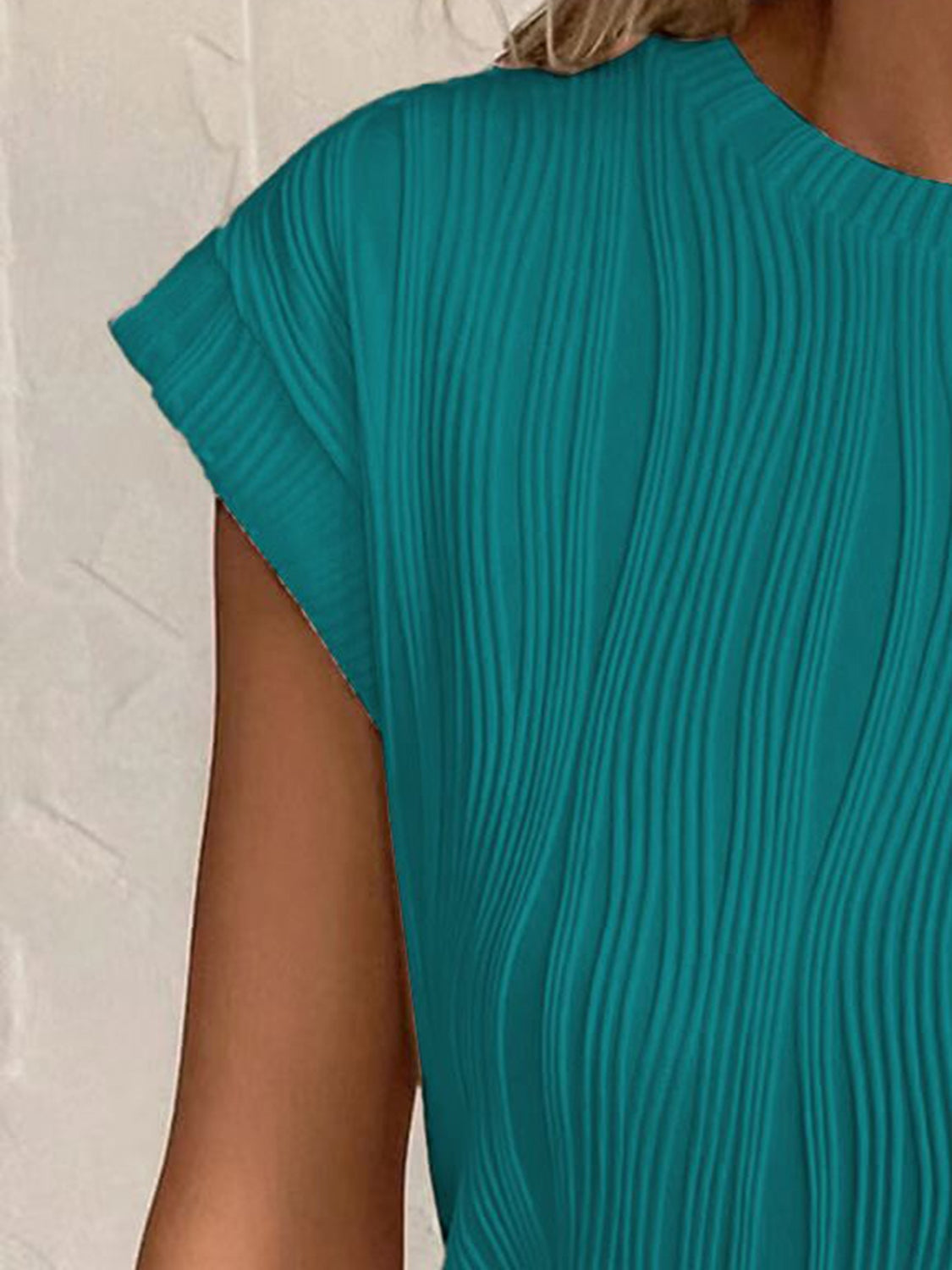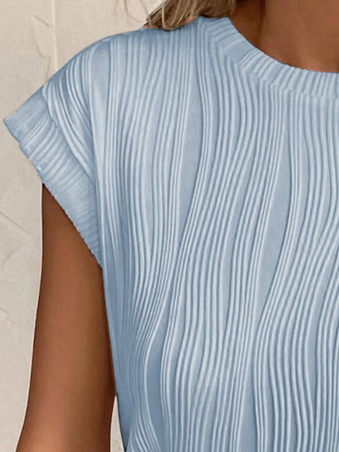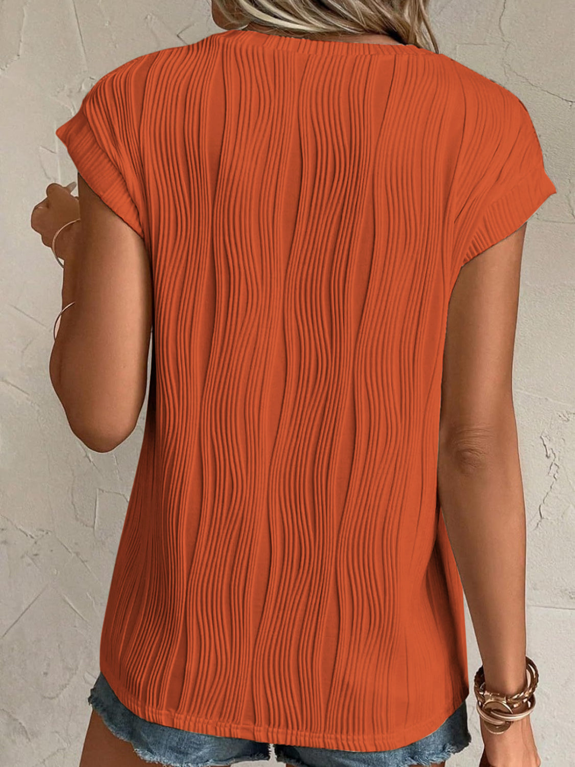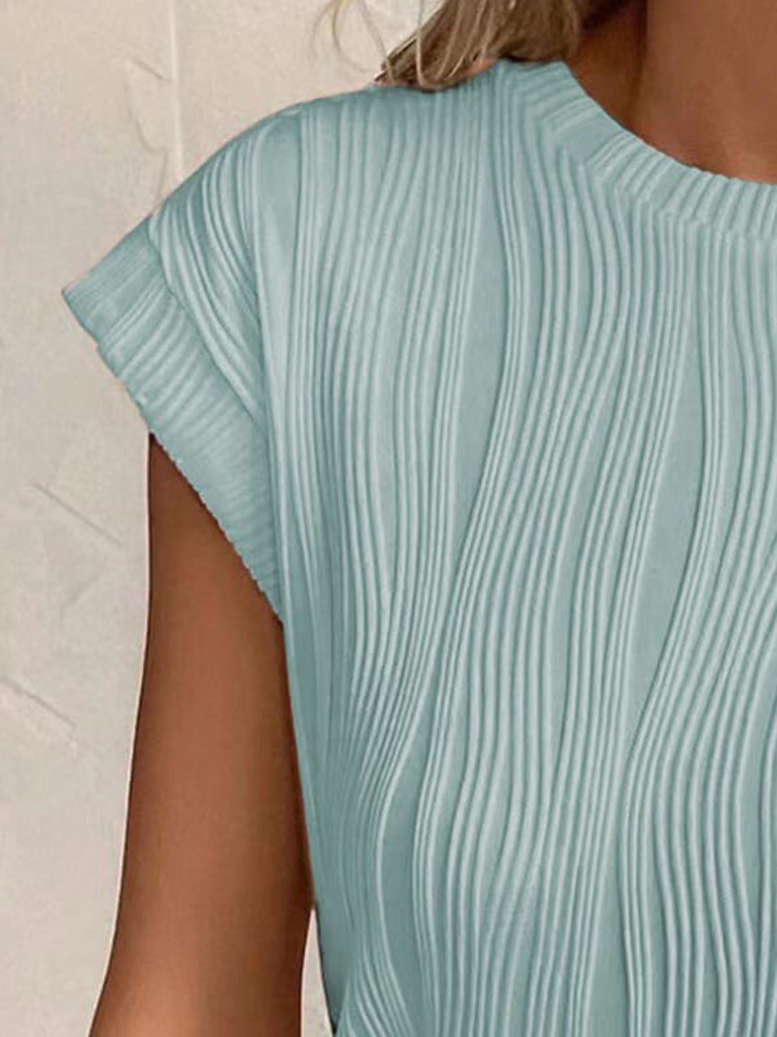 Textured Round Neck Cap Sleeve T-Shirt